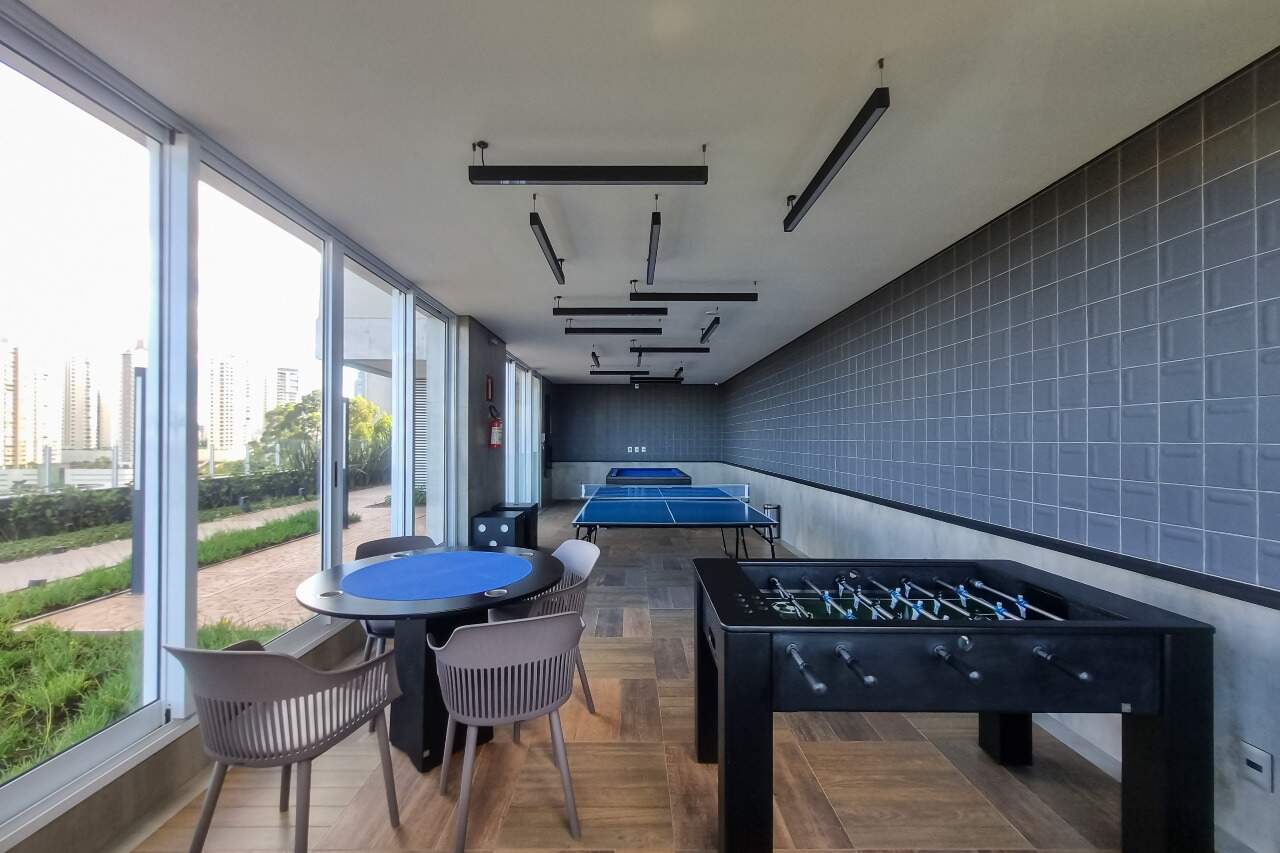 O condomínio oferece uma infraestrutura completa de lazer e bem-estar, com espaço parrilla gourmet, salão de festas, piscina com deck, sauna e spa com hidromassagem. Há ainda academia equipada, salão de jogos, quadra poliesportiva, playground, garagem moderna com ponto para carro elétrico e bicicletário. Para maior conveniência, o empreendimento também dispõe de um minimercado 24 horas.
