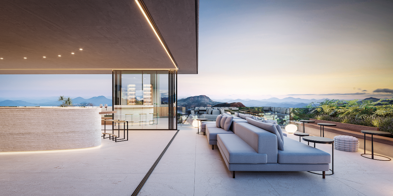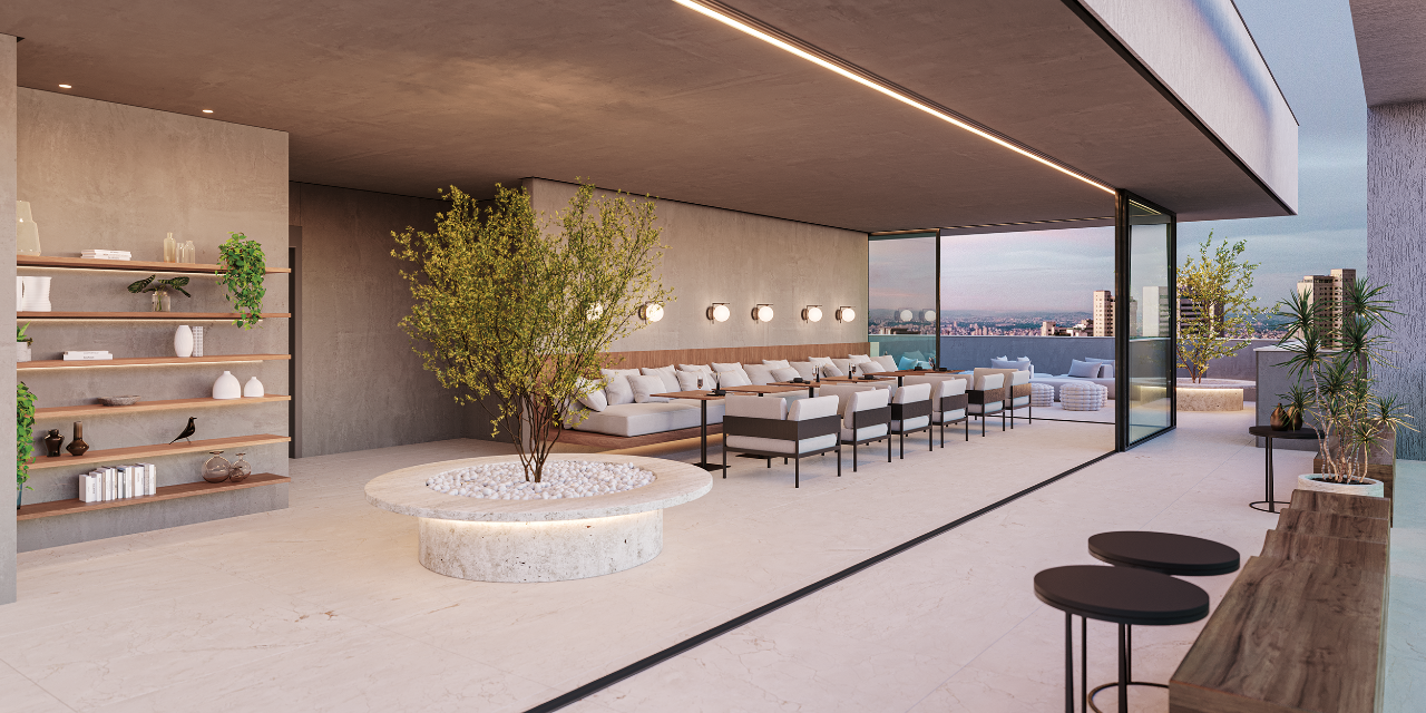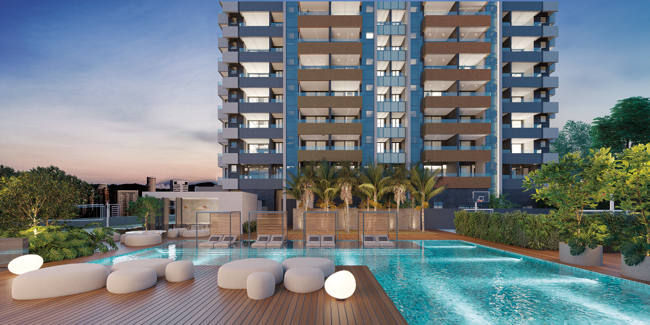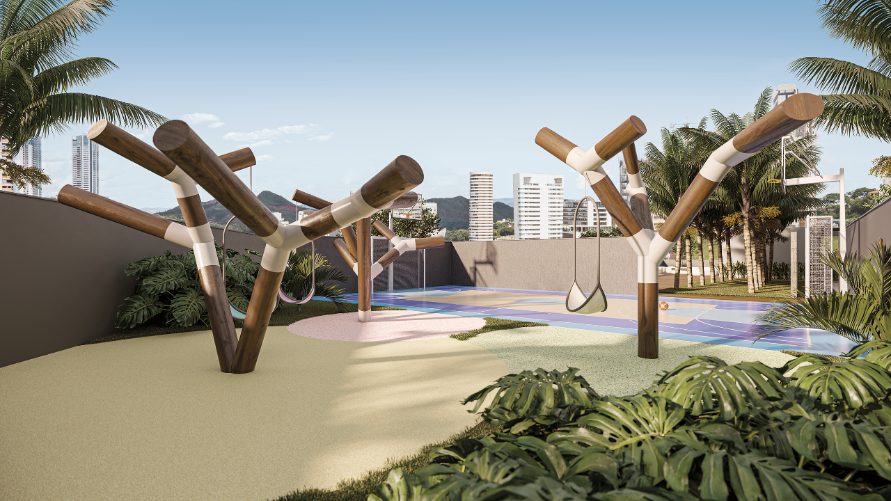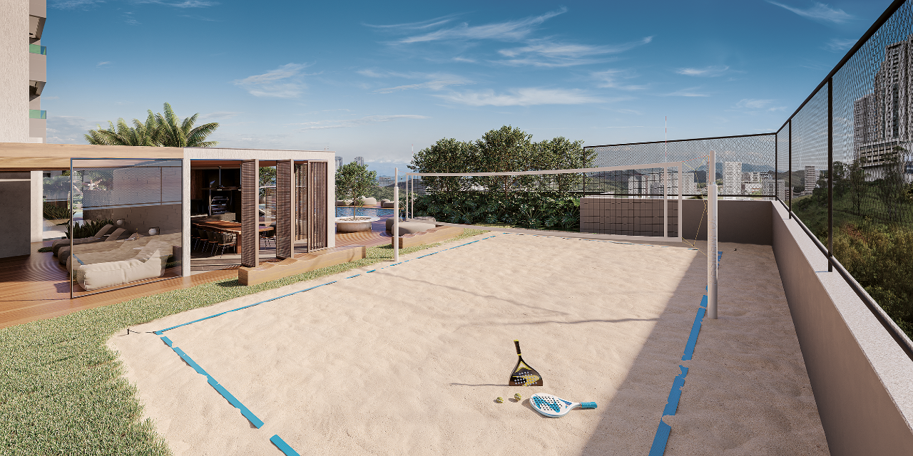 O prédio conta  com: Salão de festas, confraria gourmet, living gourmet, lounge com lareira e bar com fireplace no rooftop com vista panorâmica a aproximadamente 83?m de altura, Pilotis com coworking, sala de reunião, espaço gourmet, sauna, descanso, academia coberta, Piscina adulto e infantil com deck molhado, playground, quadra poliesportiva, duas quadras de beach tennis.