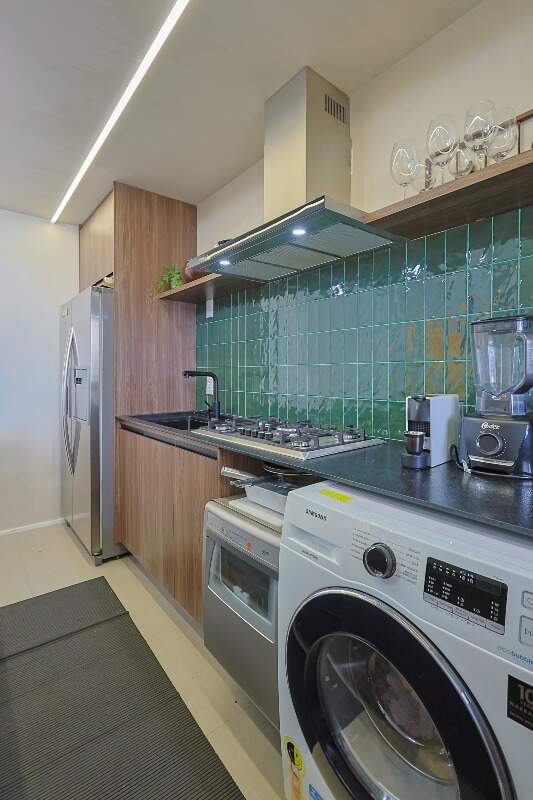 Excelente apartamento de 1 quarto, sendo 1 suíte, sala para 2 ambientes, cozinha integrada e área de serviço.