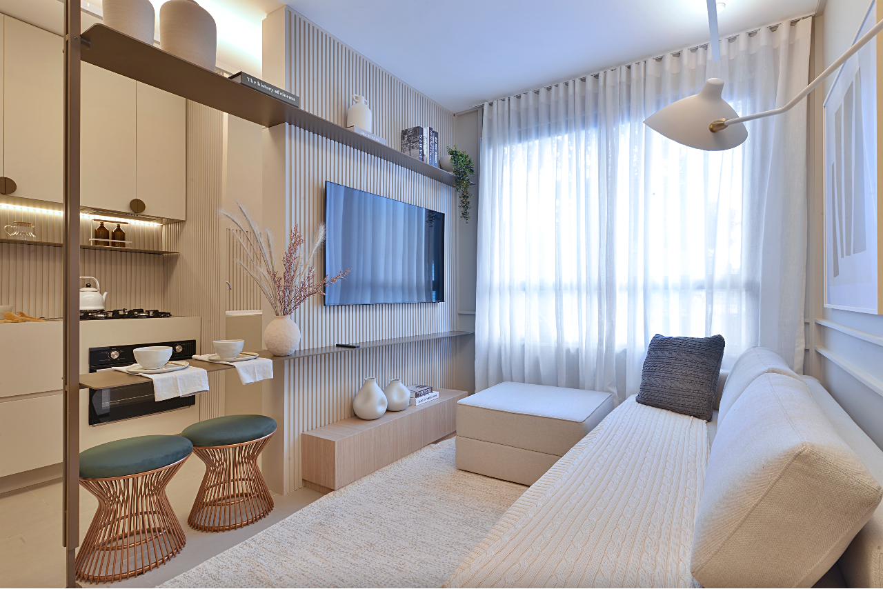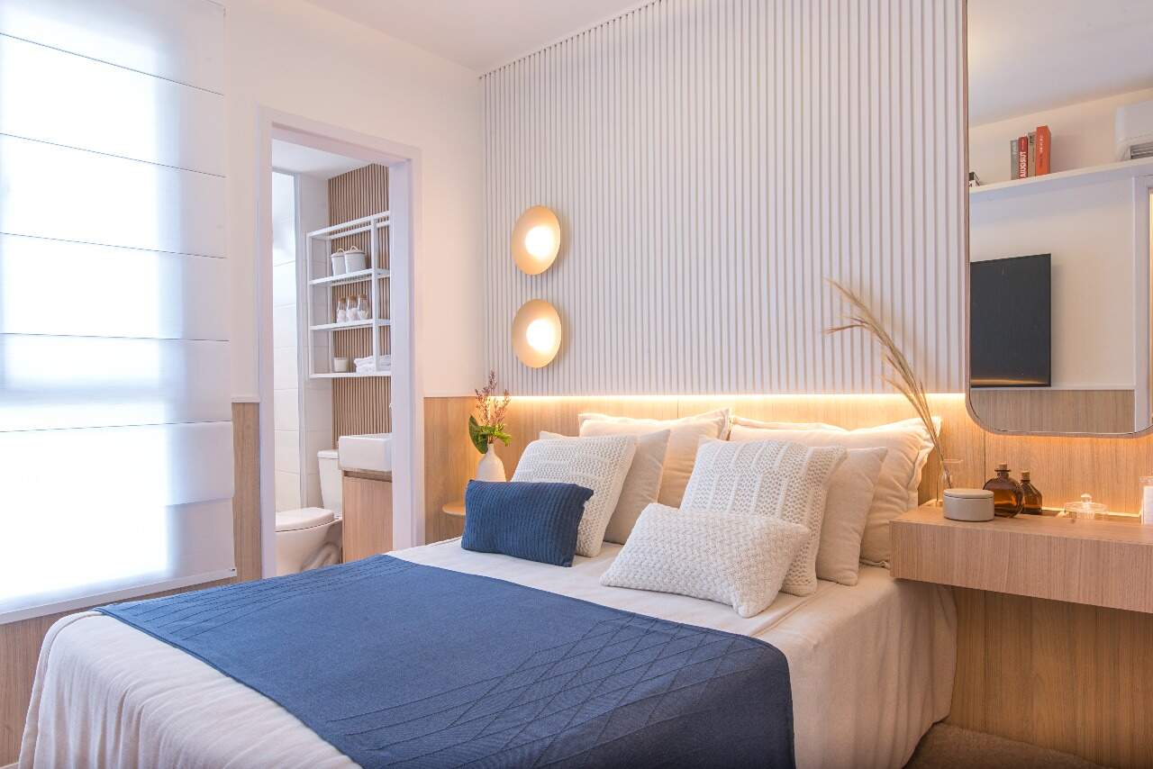 Unidades de 2 quartos com suíte, projetadas para máximo aproveitamento de espaço.