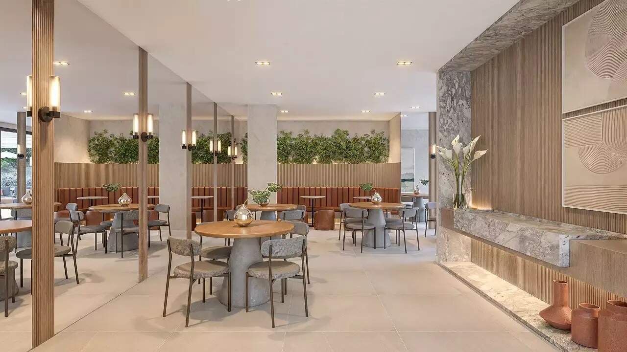 O prédio conta portaria com guarita e eclusa de segurança, locker para encomendas, ponto para carregador de carro elétrico, salão de festas, espaço gourmet, espaço fitness, piscina com deck, quadra de esportes e playground.