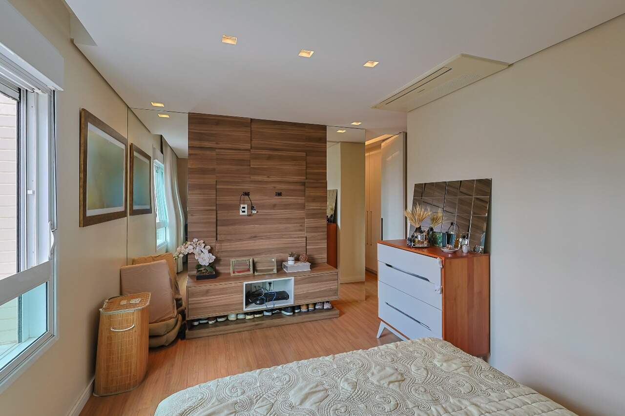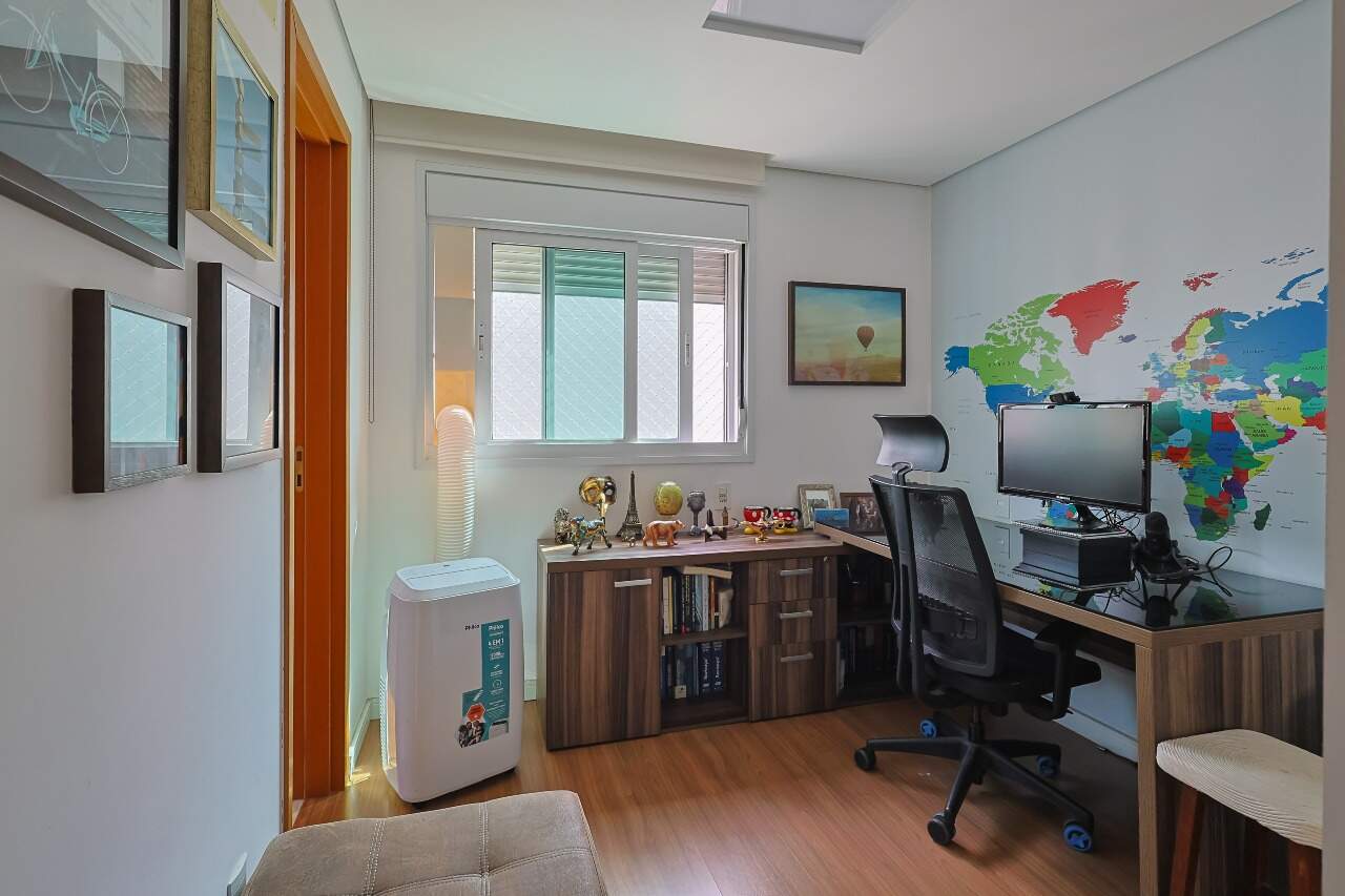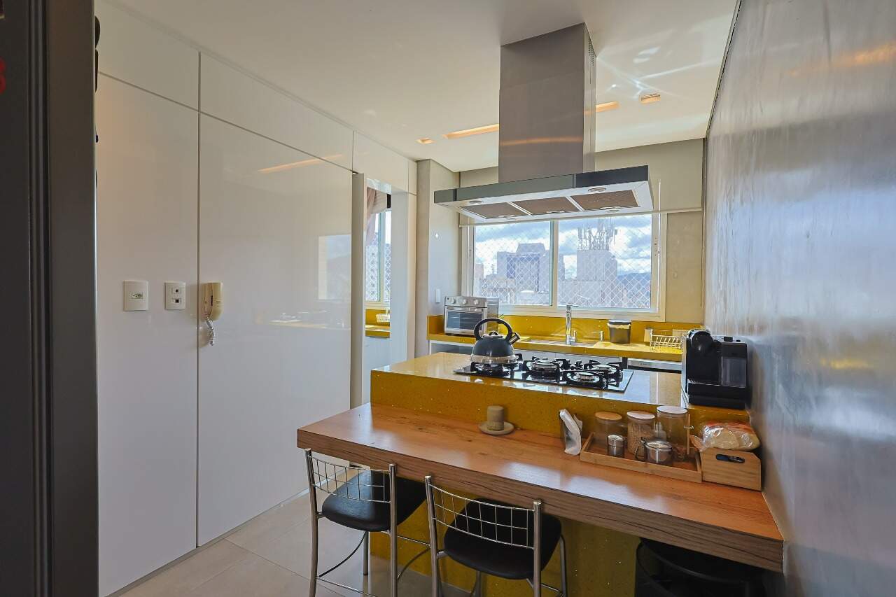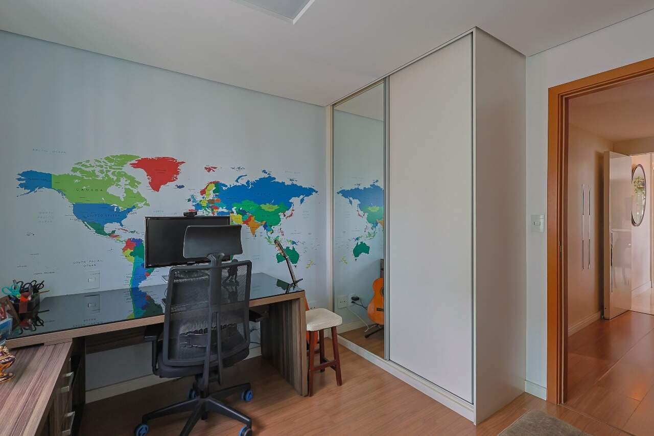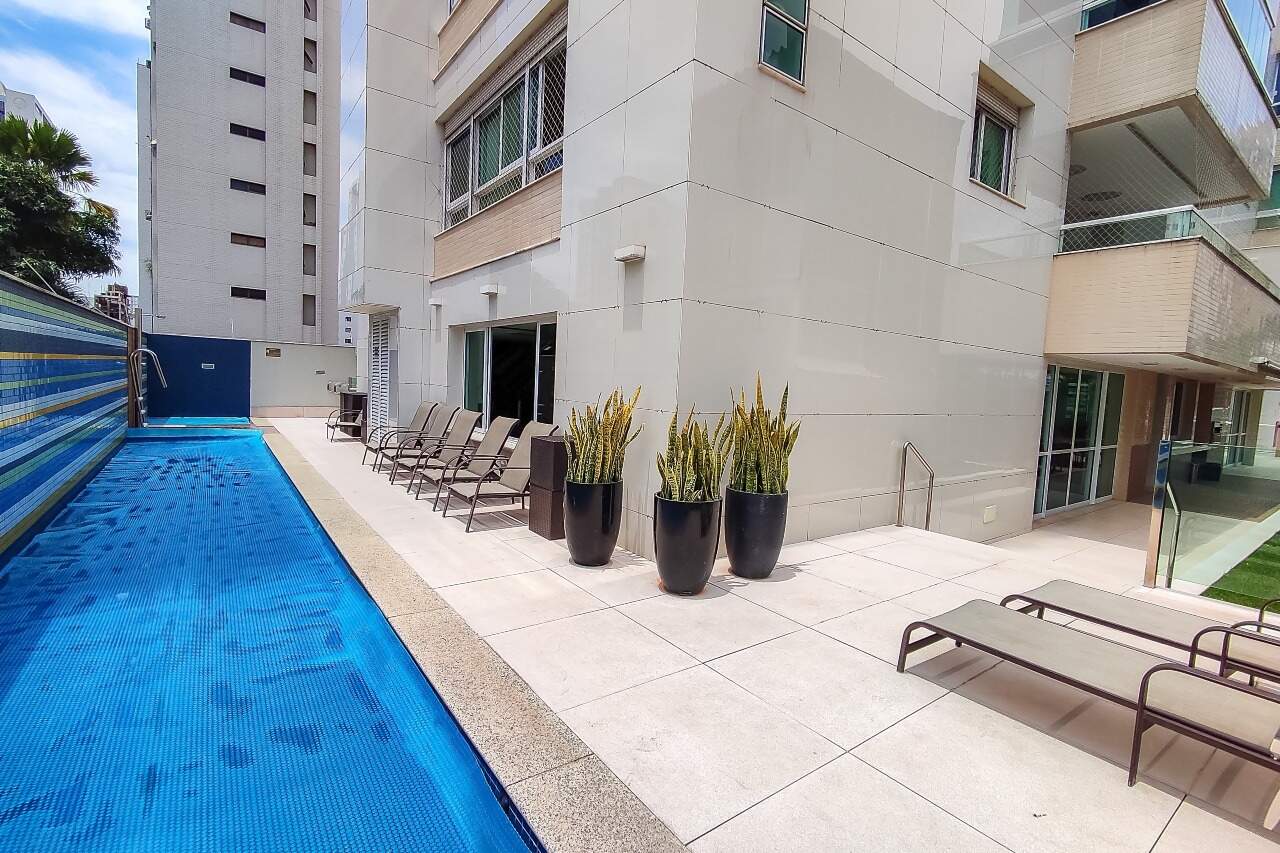Em andar alto, este apartamento une sofisticação a uma reforma inteligente, que transformou os originais 4 quartos em 3 amplas suítes para privilegiar uma sala estendida com acabamentos de alto padrão. O requinte se manifesta nos detalhes, como o piso da sala em mármore, o painel da TV em travertino e as bancadas da cozinha em Ecoart.