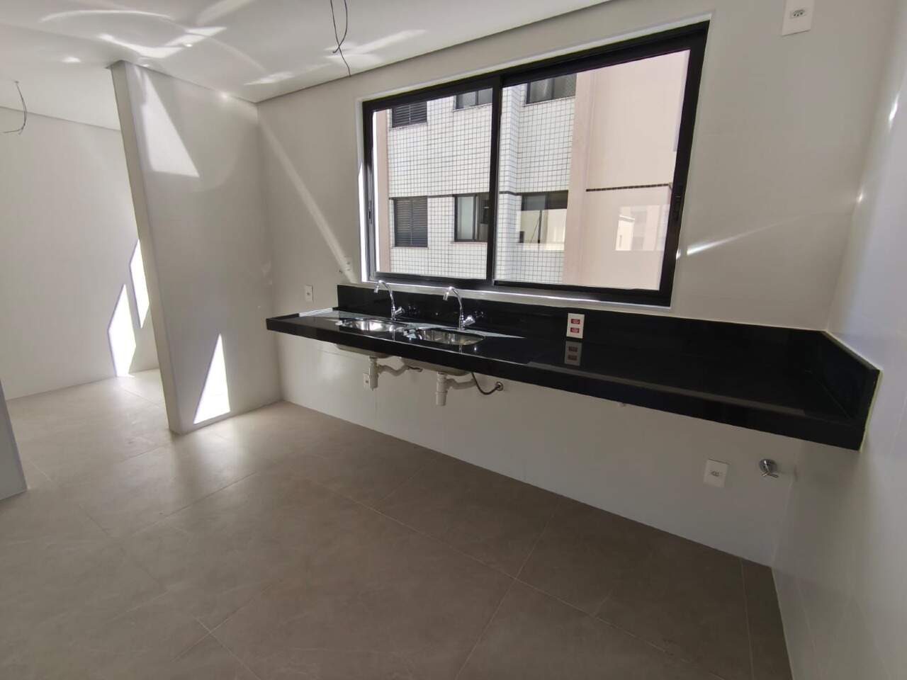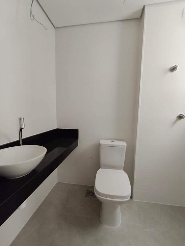 Apartamento com 3 suítes, cozinha americana com bancada em granito, sala grande, lavabo, piso em porcelanato e área de serviço