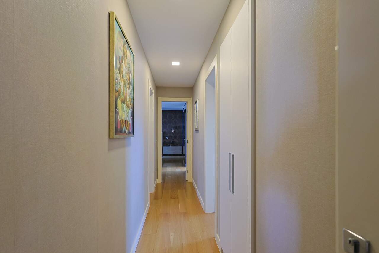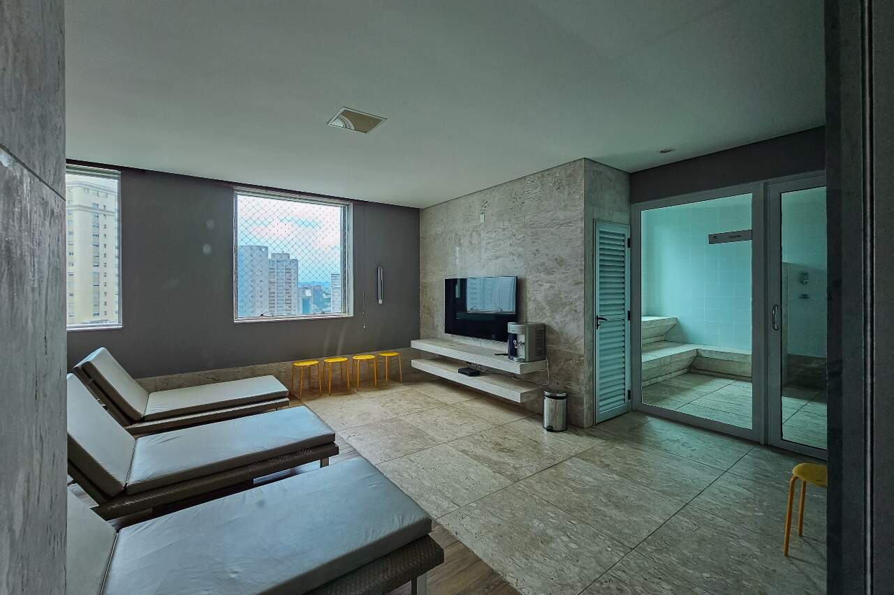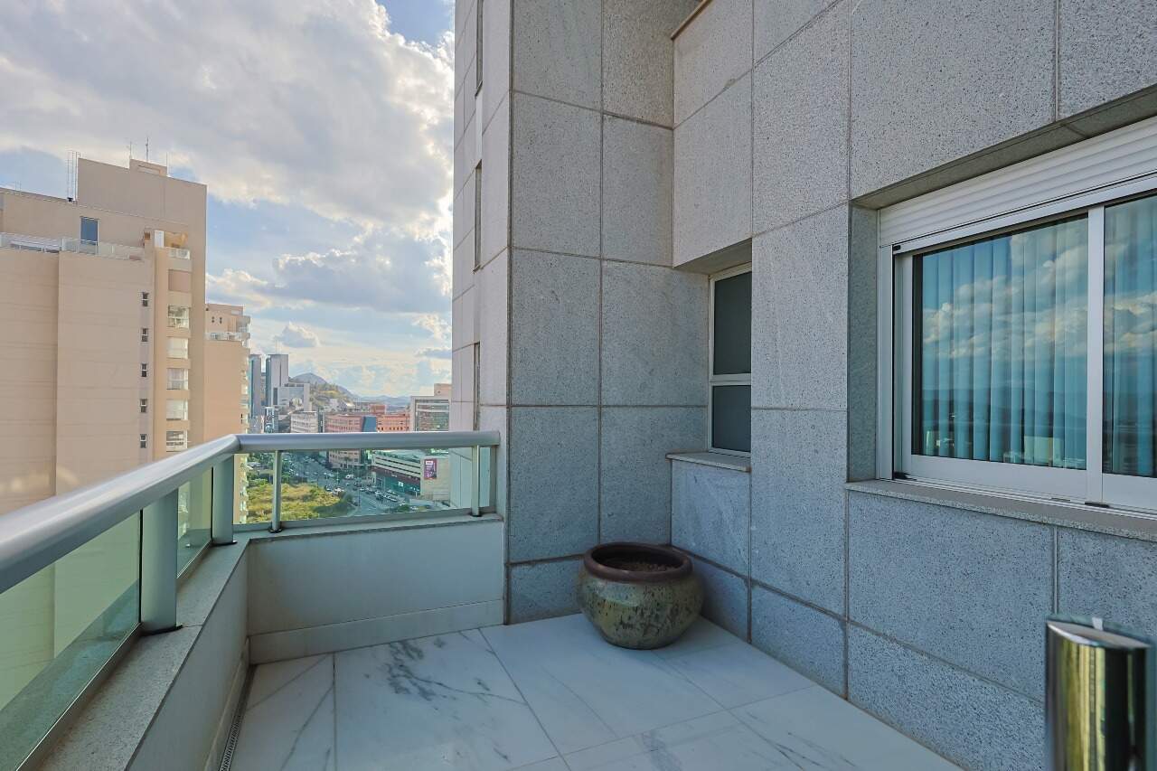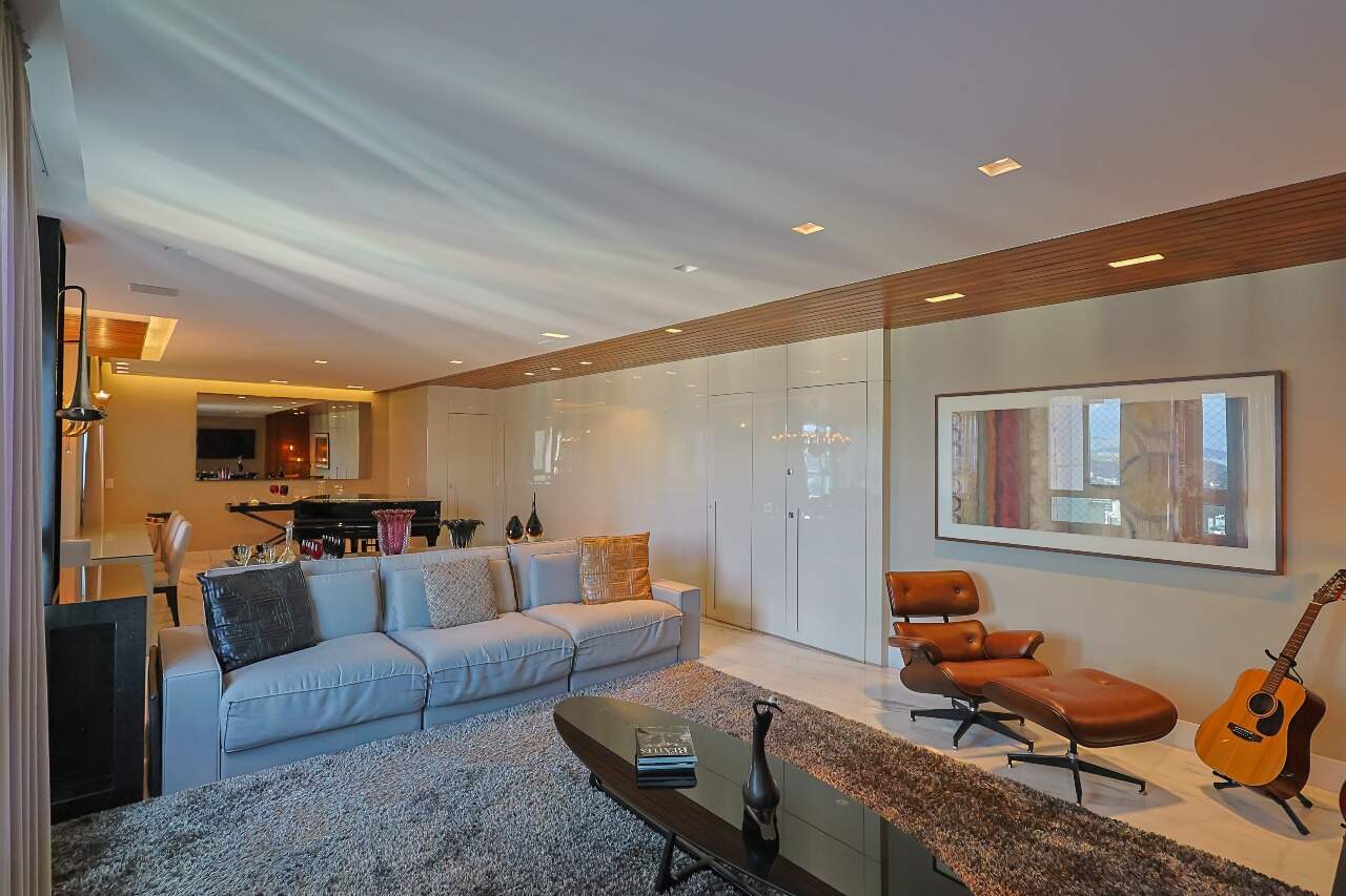 O apartamento possui piso em mármore com sala para 2 dois ambientes, varanda, 3 suítes e 5 vagas.