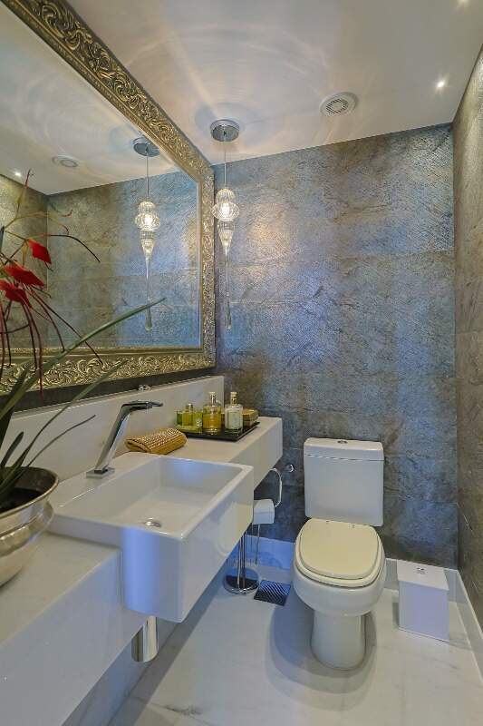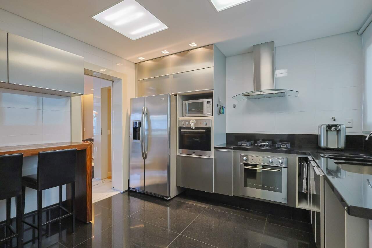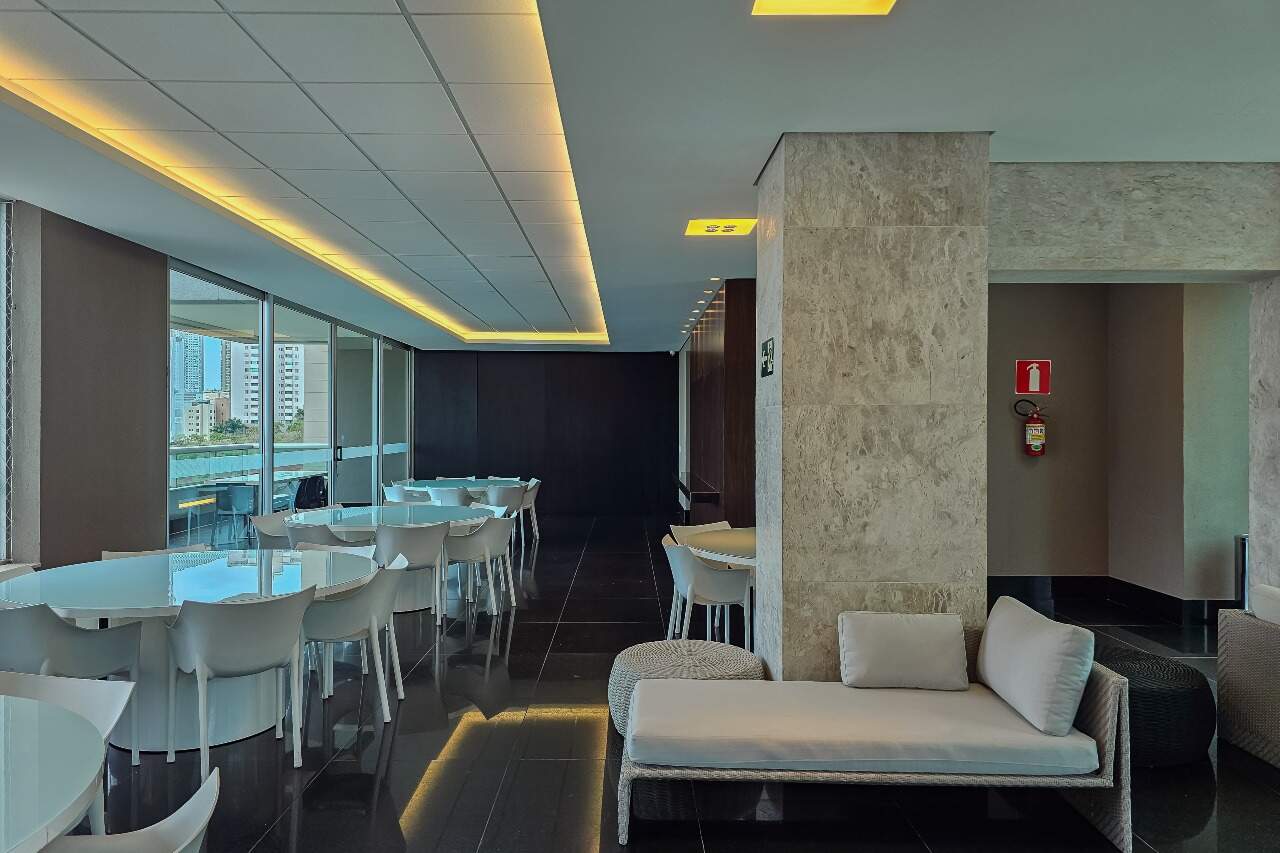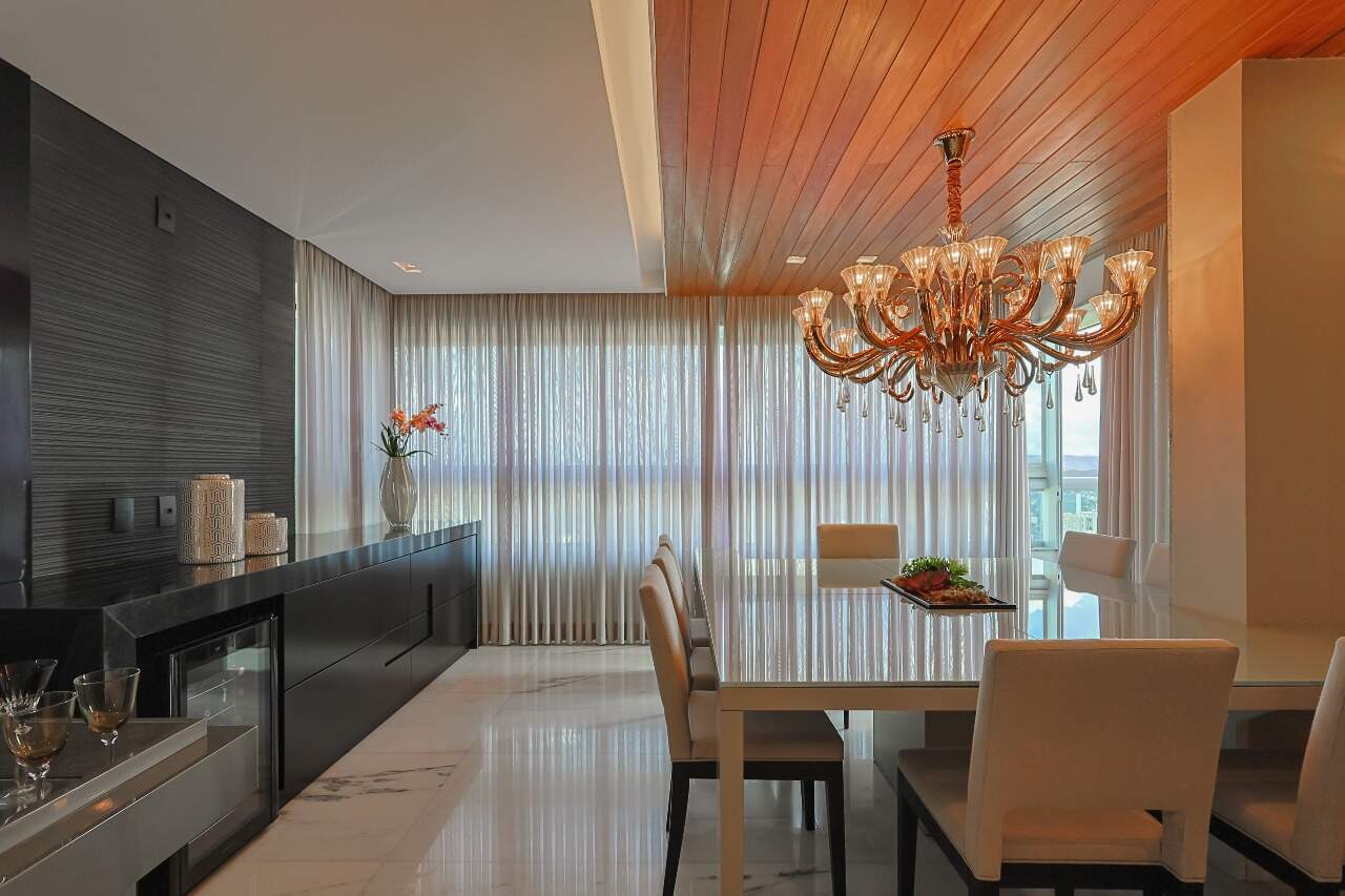 O apartamento possui piso em mármore com sala para 2 dois ambientes, varanda, 3 suítes e 5 vagas.