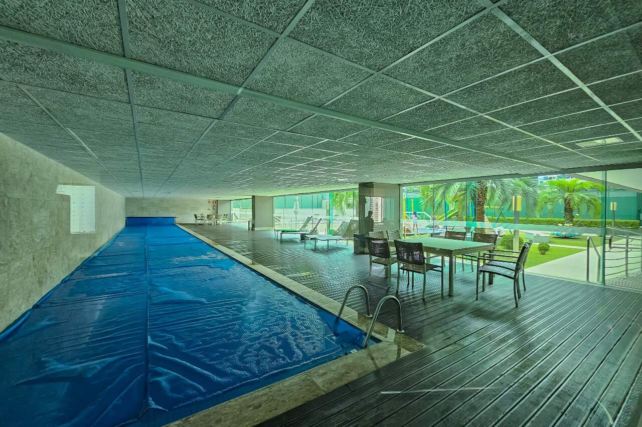 Lazer completo com destaque para o Home Cinema, Academia climatizada, Piscina coberta aquecida com raia, Quadra de tênis em saibro.
