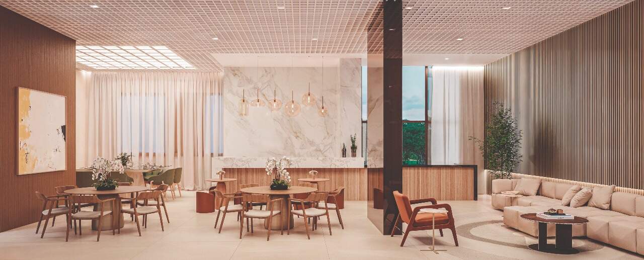Lazer de resort com Espaço Kids, Playground, Espaço Massagem, Espaço Beleza, Sauna, Spa, Academia, Esporte lounge, Quadra de tênis, Quadra de beach tennis, Ducha, Salão de Festas, Solarium, Prainha, Piscina infantil, Piscina aquecida com raia, Coworking, Coffee Break, Sala de Reunião, Varanda, Repouso e redário, Lounge com Lareira, Espaço Gourmet, Confraria Gourmet, Pet Place, Deck.