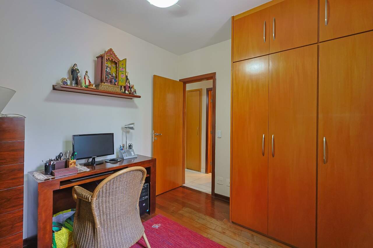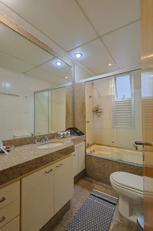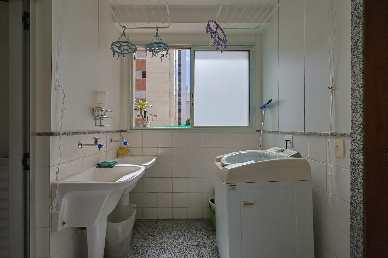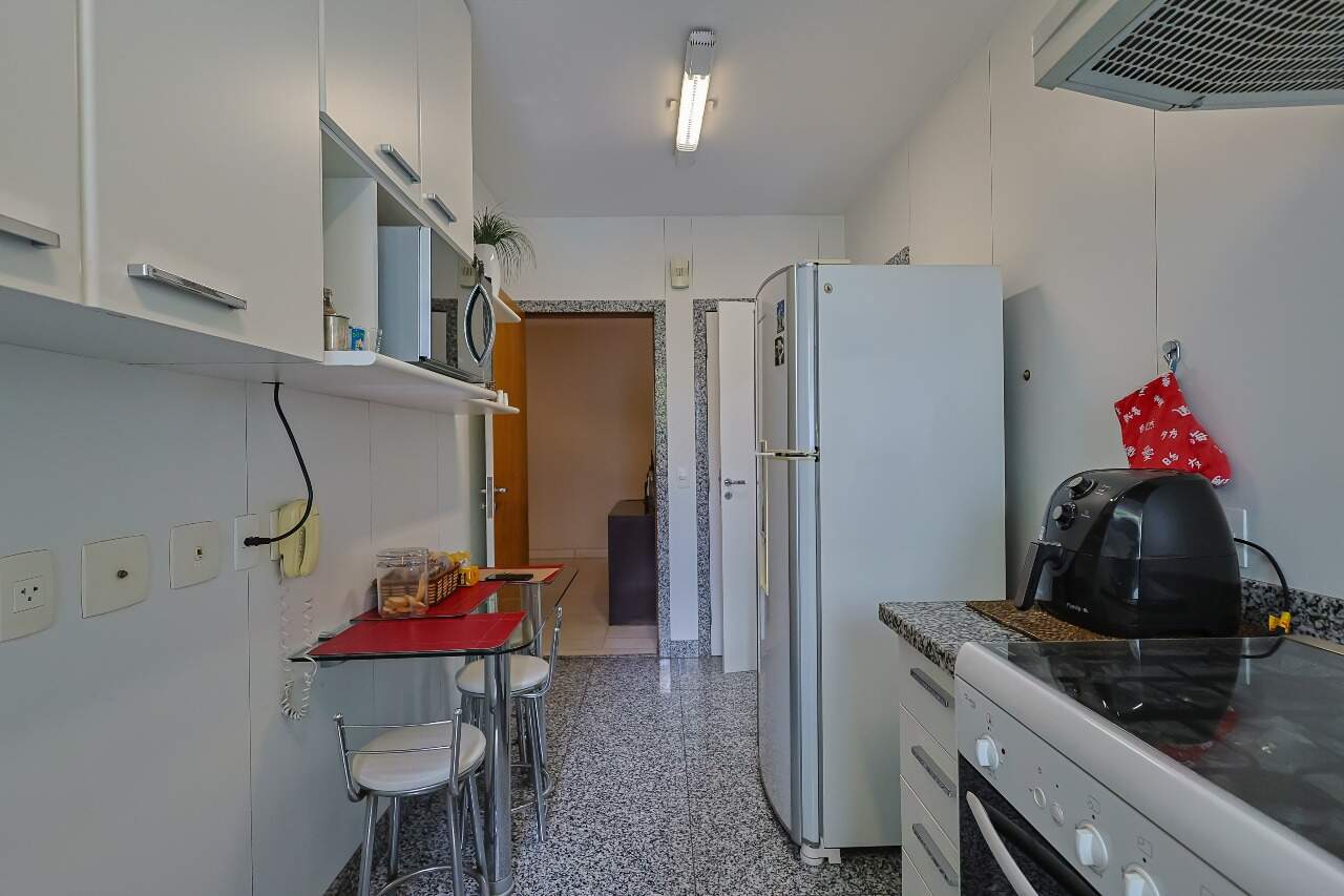 O apartamento conta com sala para 3 ambientes com varanda, lavabo, 4 quartos com armários, sendo 1 suíte com varanda, banheiro social, cozinha com piso e bancada em granito, armários, despesa, área de serviço e DCE.