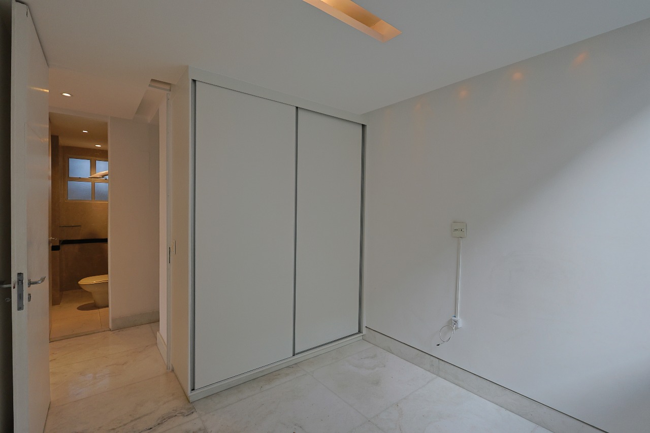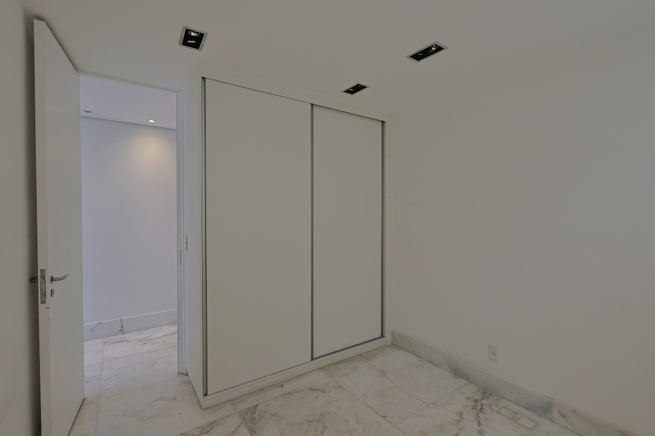 No segundo pavimento, o foco é o bem-estar e o entretenimento. Uma ampla sala com piso em mármore, ar-condicionado e iluminação planejada integra-se a uma ilha gourmet sofisticada. O grande destaque é a piscina com teto retrátil, ideal para momentos de lazer em qualquer estação. Este nível abriga ainda a suíte master, com piso em madeira envernizada e um luxuoso banheiro com banheira de imersão, além de um lavabo para as visitas.