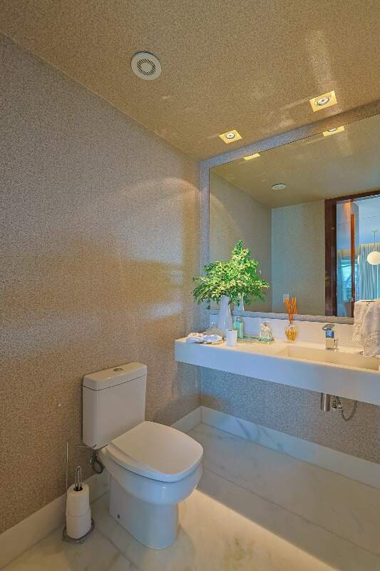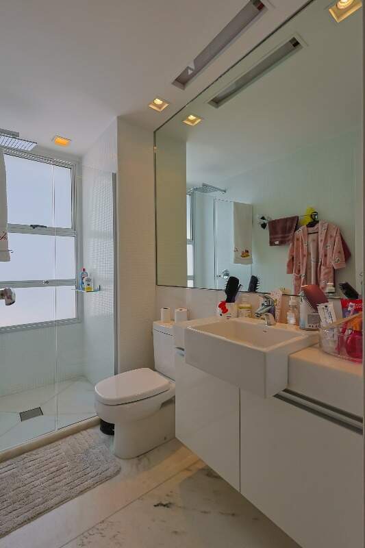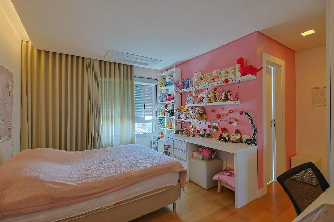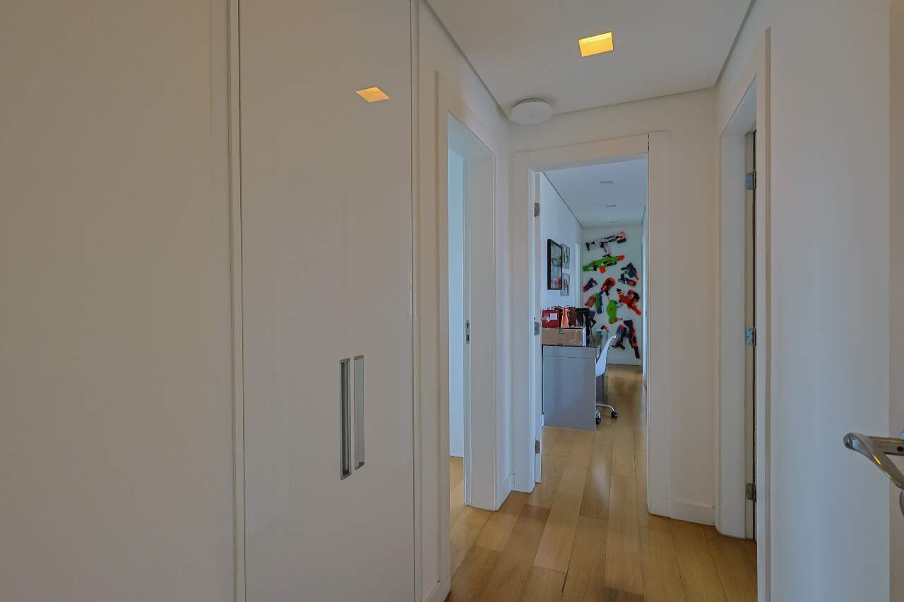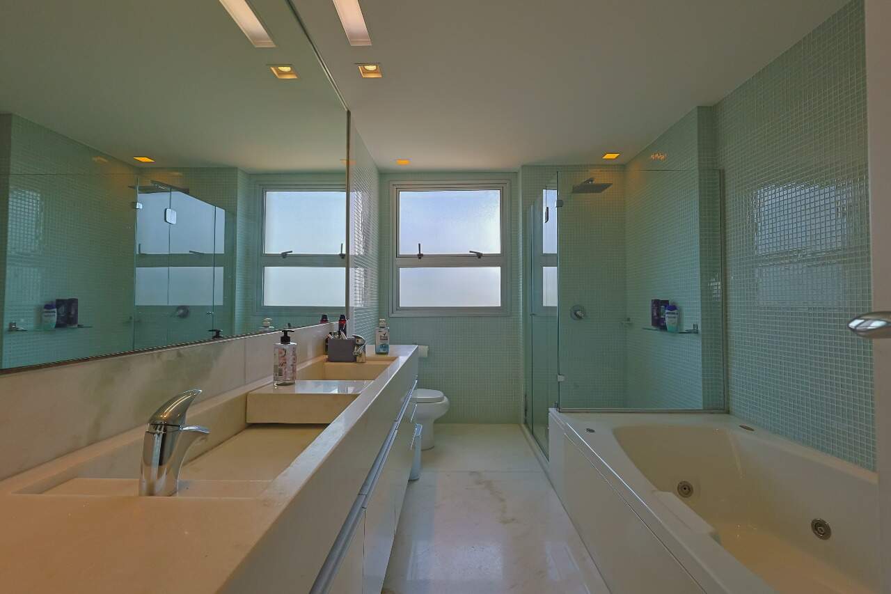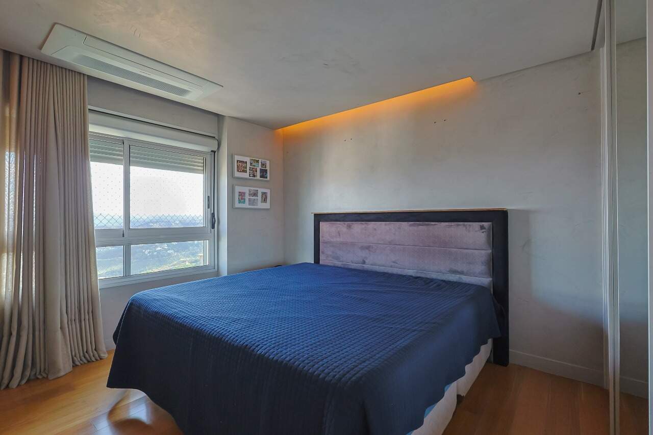 Apartamento altíssimo padrão, andar alto, com vista definitiva para as montanha, sala para 4 ambientes, rico em marcenaria, piso em mármore branco, varanda gourmet, cristaleira, rouparia, 5 quartos, sendo 4 suítes, todas com armários e closets, banhos com piso em mármore, lavabo, suíte master com 2 closets e 2 banhos, ar condicionado, janelas amplas, escritório, copa/ cozinha, ilha em granito, despensa, DCE