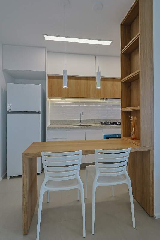 Armários planejados, cozinha integrada e equipada, iluminação planejada, lavabo e ar condicionado. Acabamento excelente e minimamente decorado.