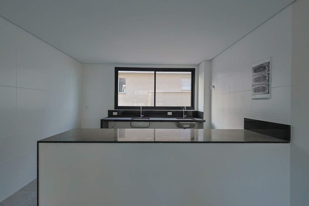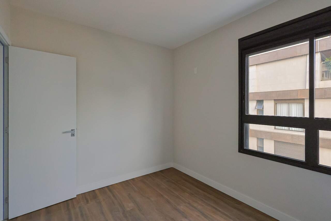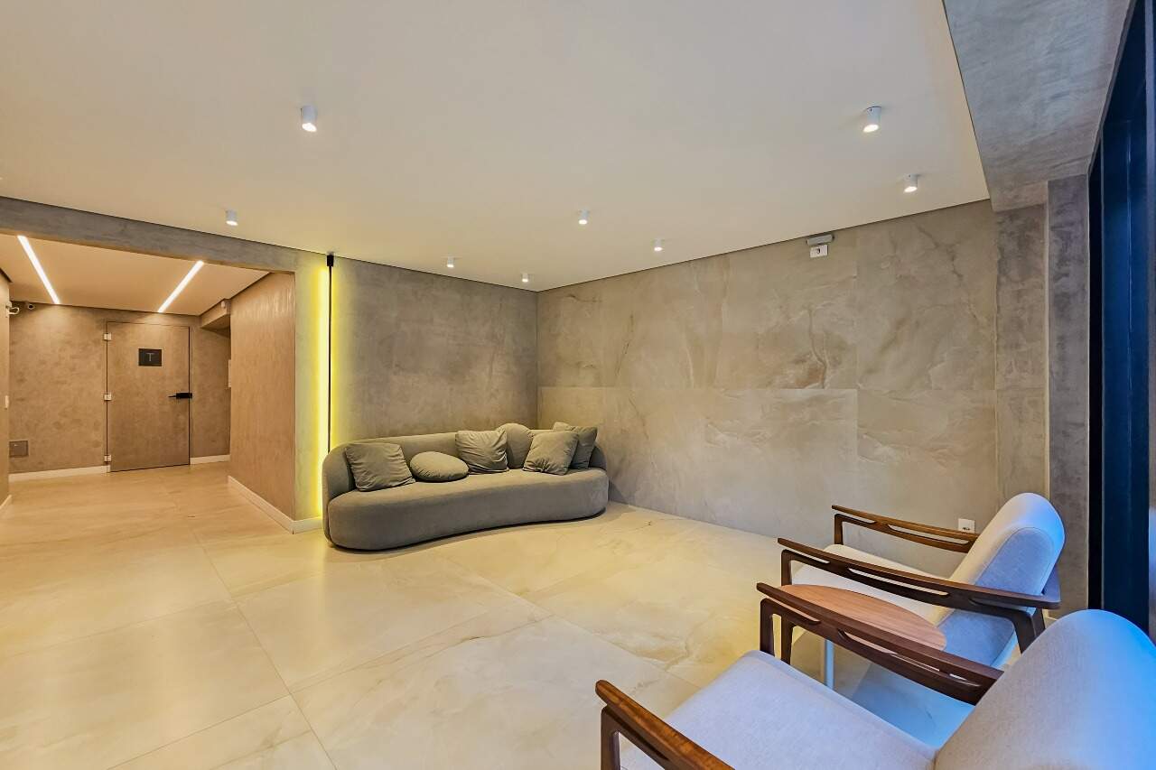 O apartamento possui uma sala ampla integrada à cozinha americana.