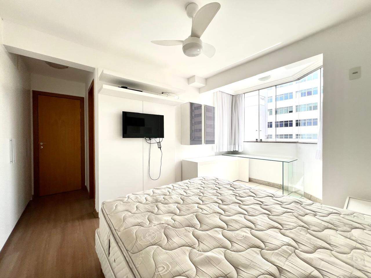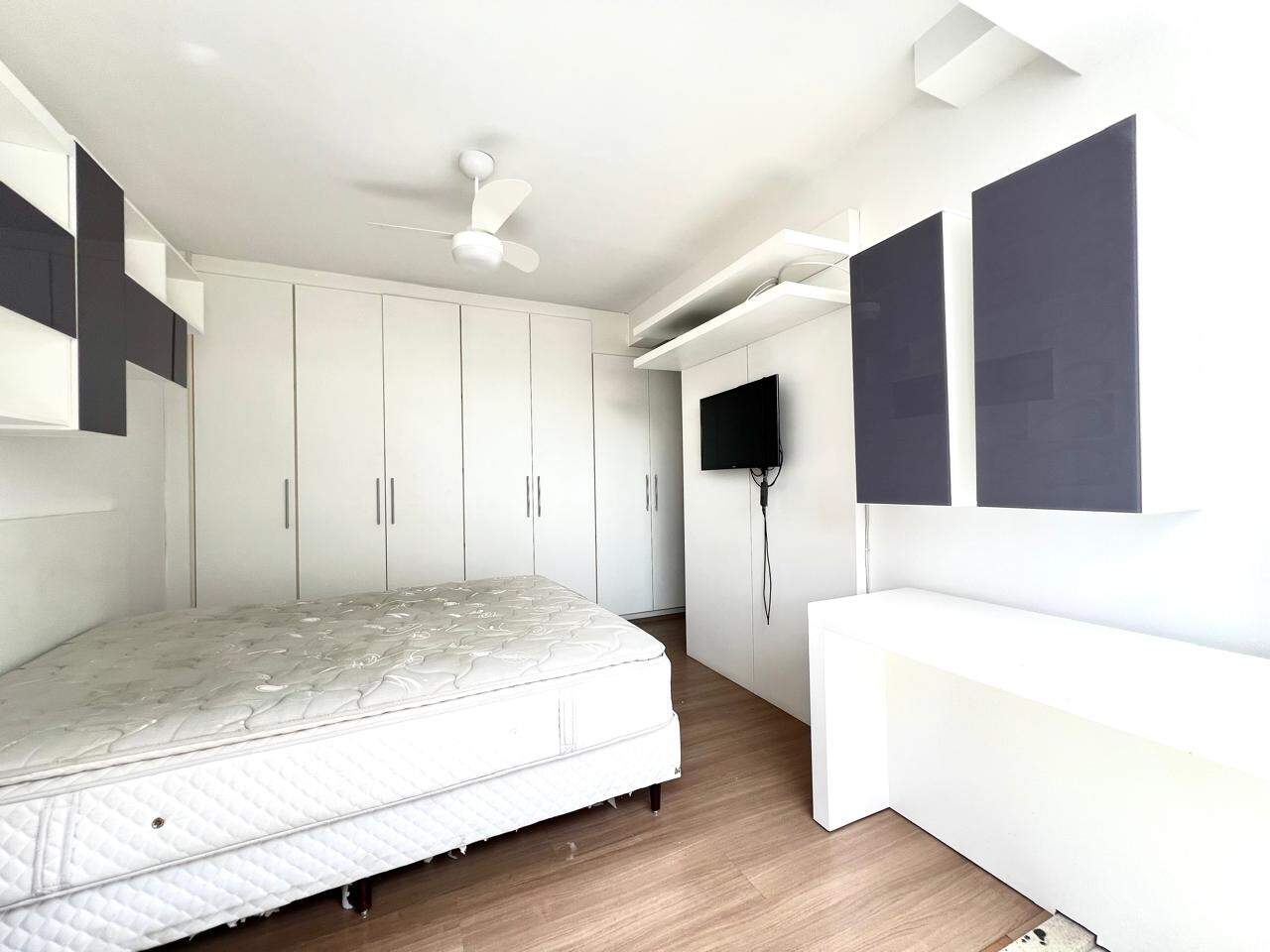 Este excelente apartamento de 2 quartos, sendo 1 suíte, destaca-se pelo acabamento de qualidade com armários planejados e box blindex em ambos os banheiros, além de uma sala com varanda em piso porcelanato. A cozinha americana, equipada com armários e piso em granito, integra-se à área de serviço de forma funcional.