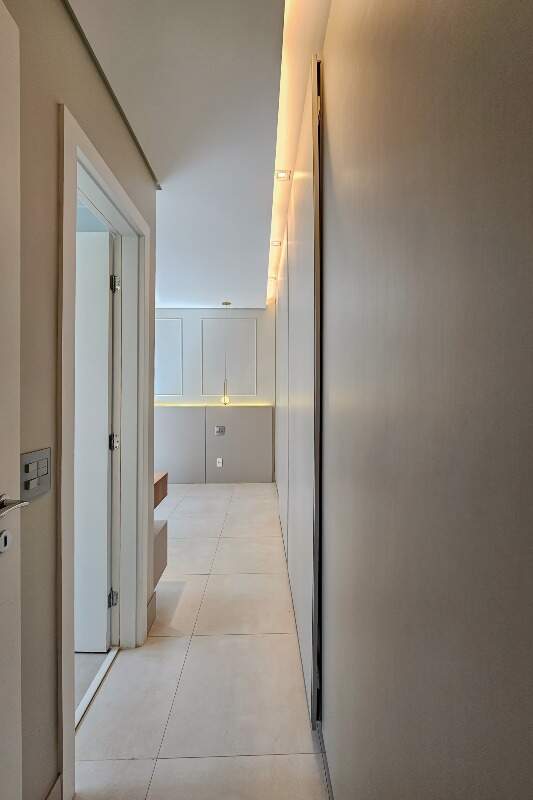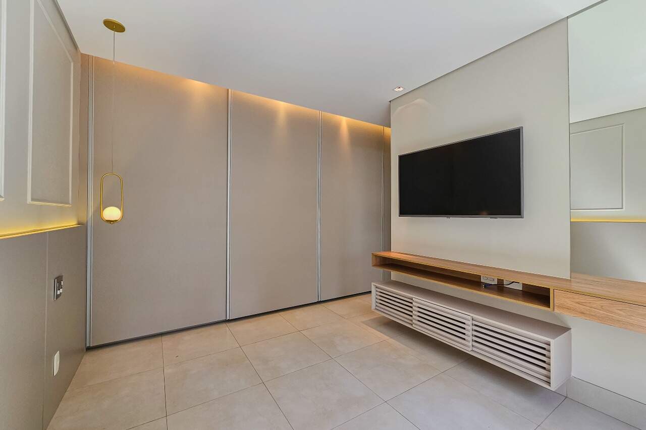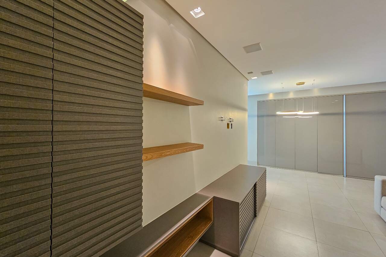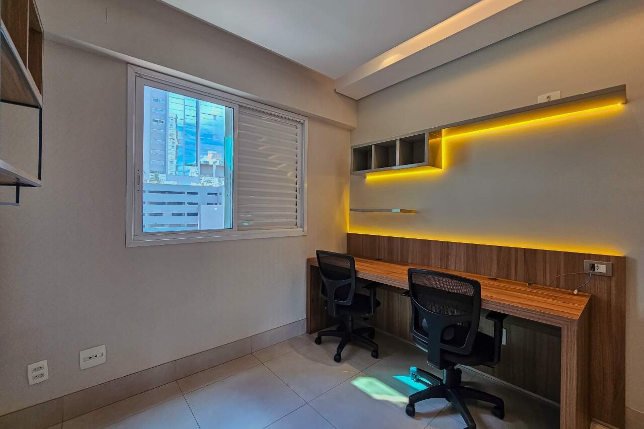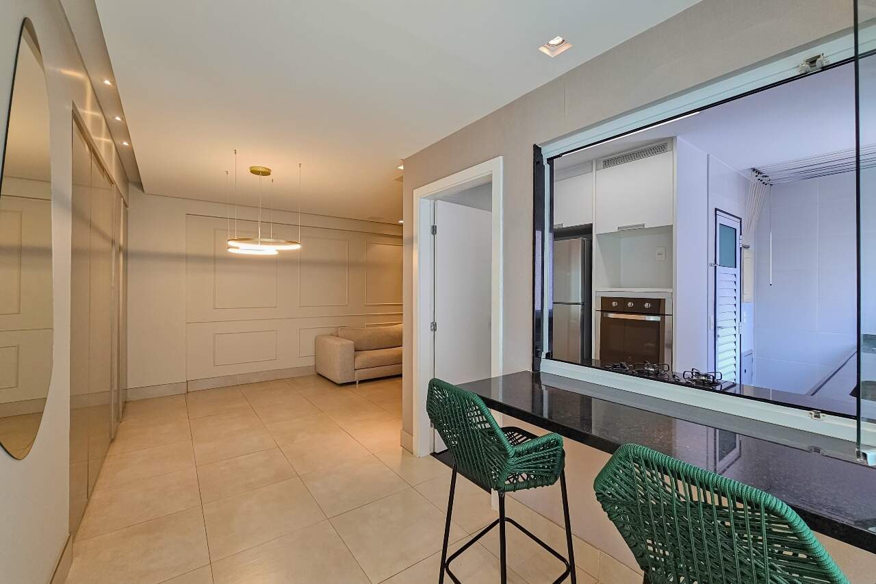 Andar alto, armários e iluminação planejados, cozinha montada e equipada.