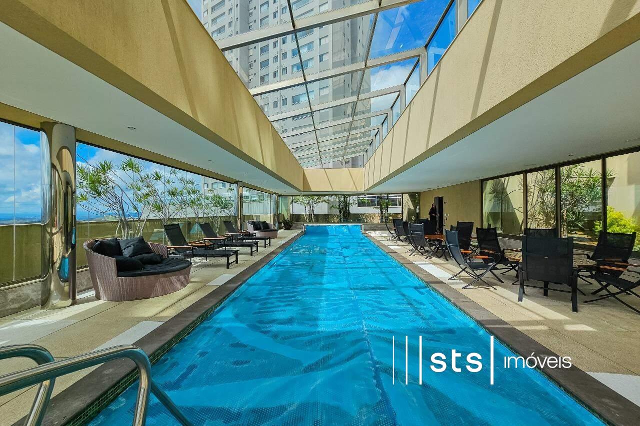 Prédio de torre única, com fachada moderna e área de lazer composta por piscina aquecida coberta, espaço gourmet, sauna e academia.