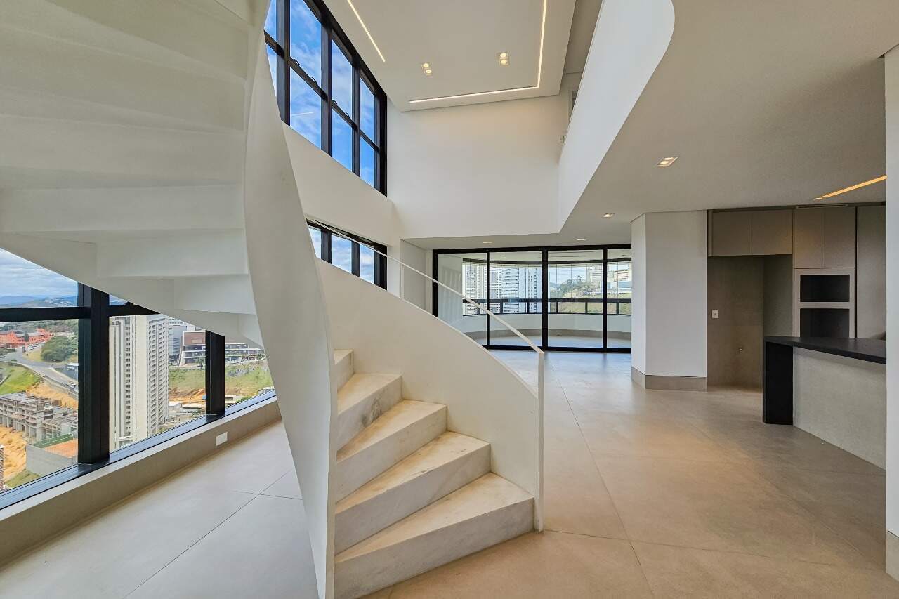 Duplex, com cozinha integrada à sala, varanda gourmet, área de serviço completa com DCE e 4 vagas de varagem.