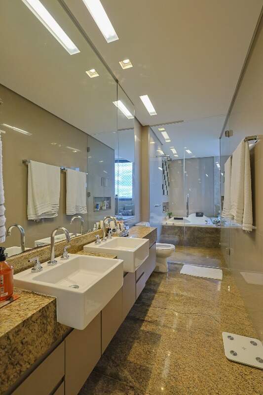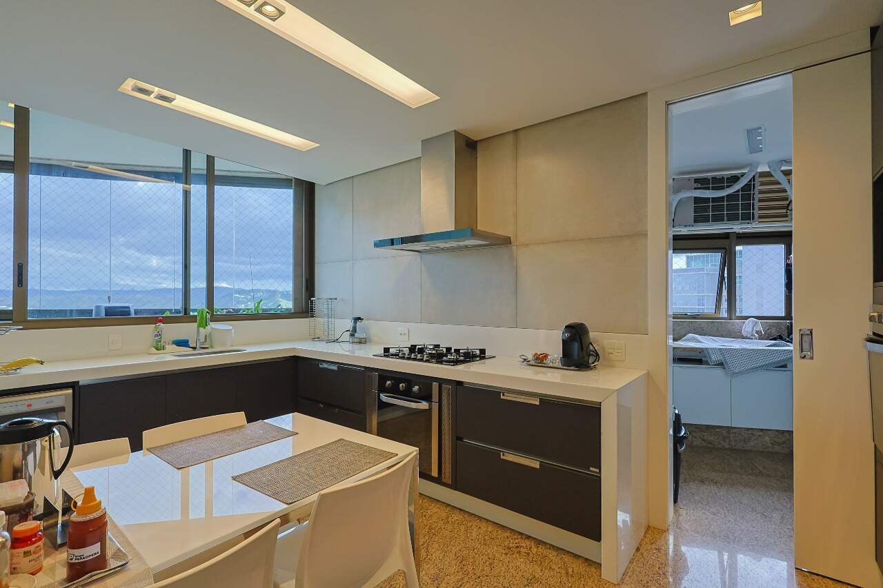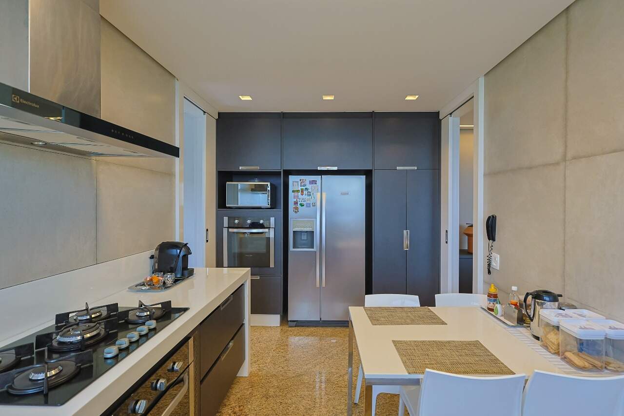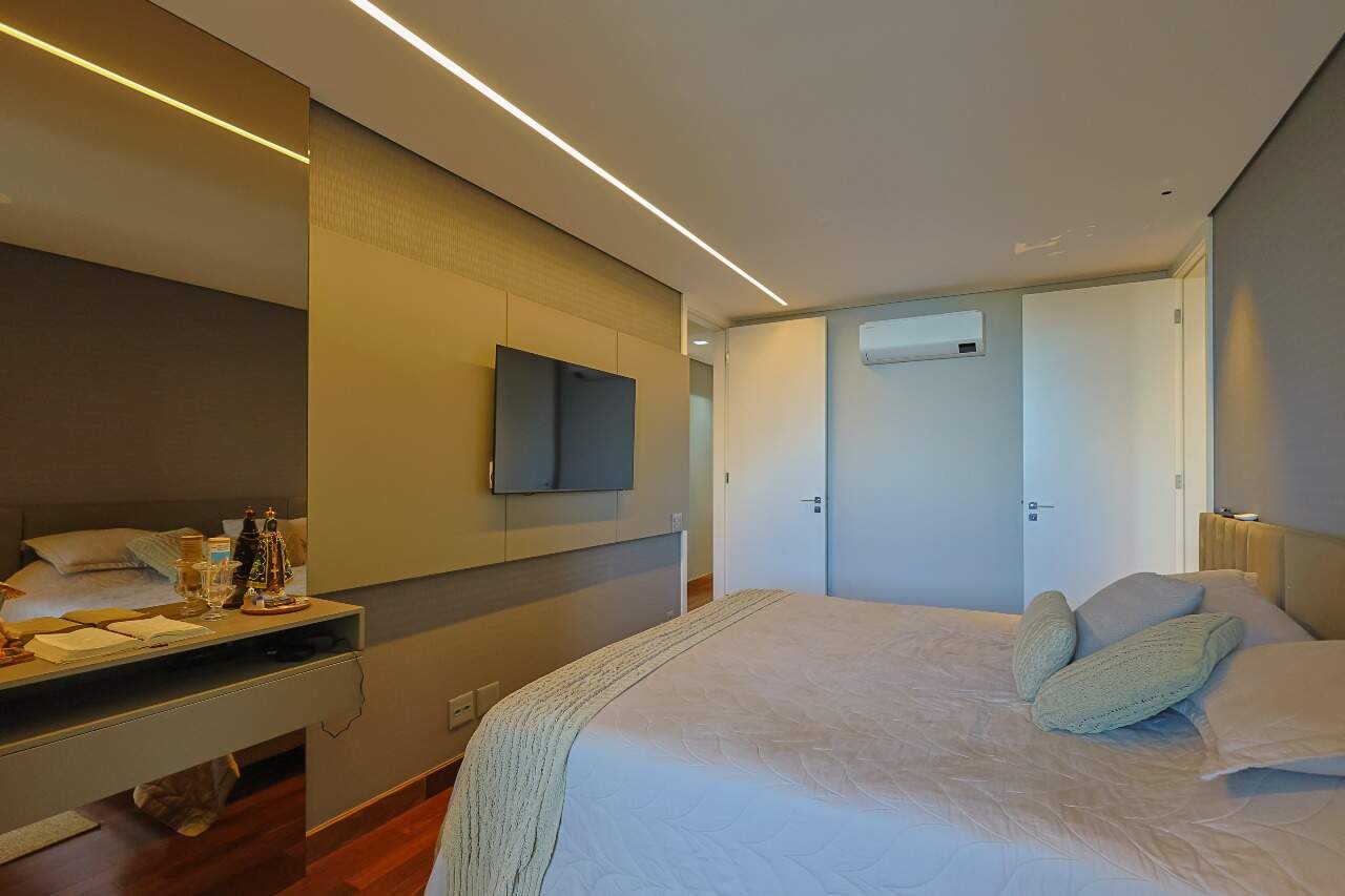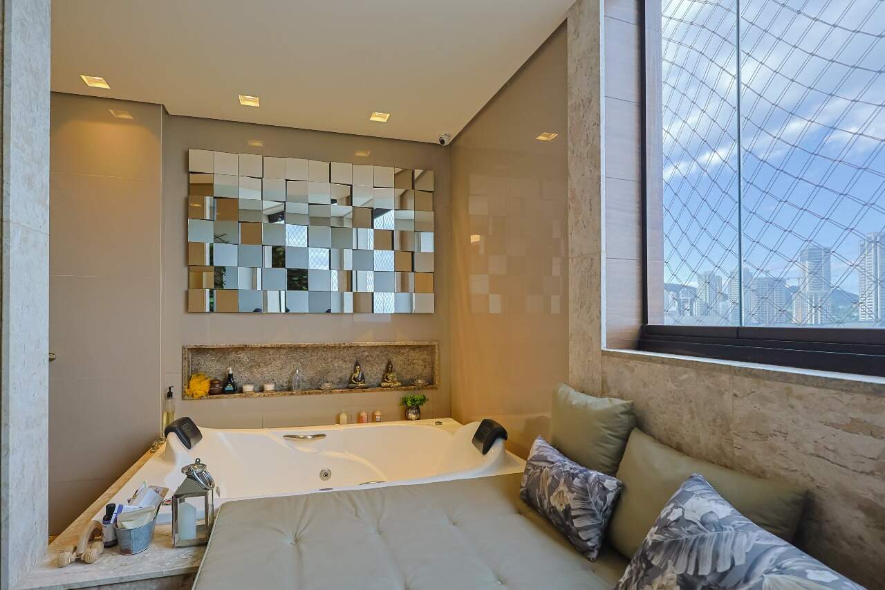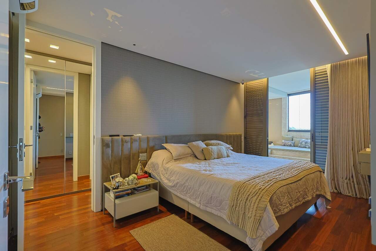 Suíte master com closet e hidromassagem, rouparia, cozinha planejada, espaço gourmet e dependência completa de empregada. 4 vagas de garagem.