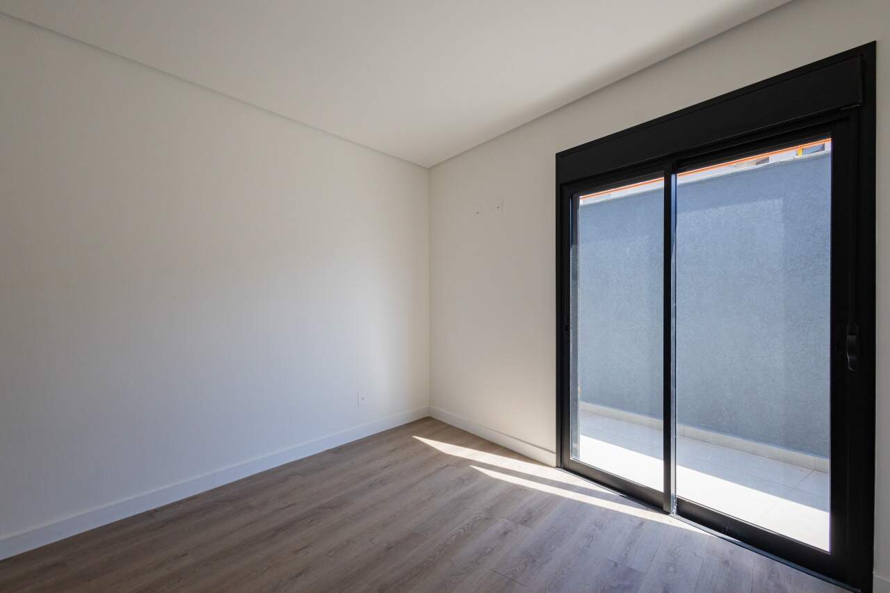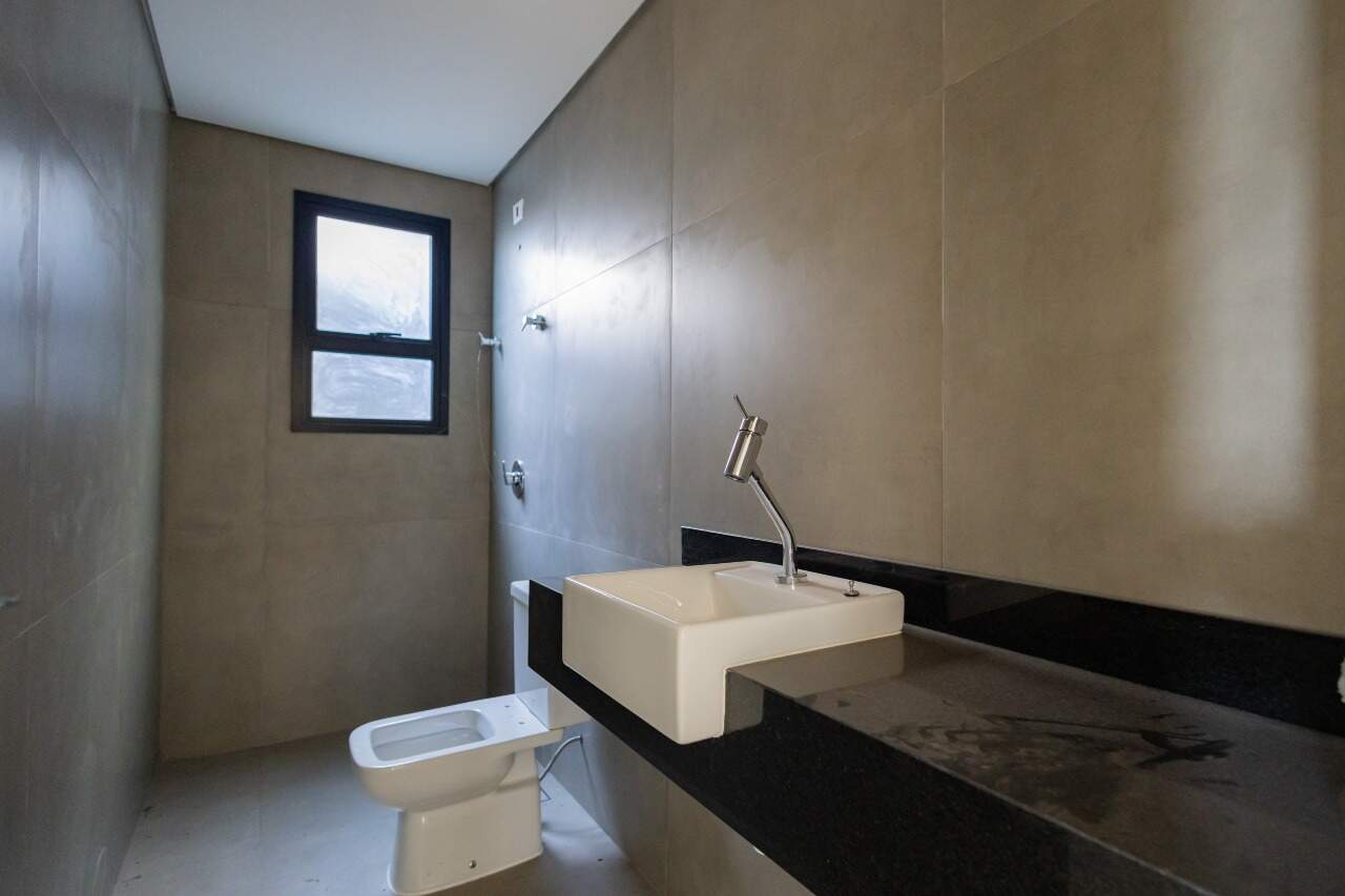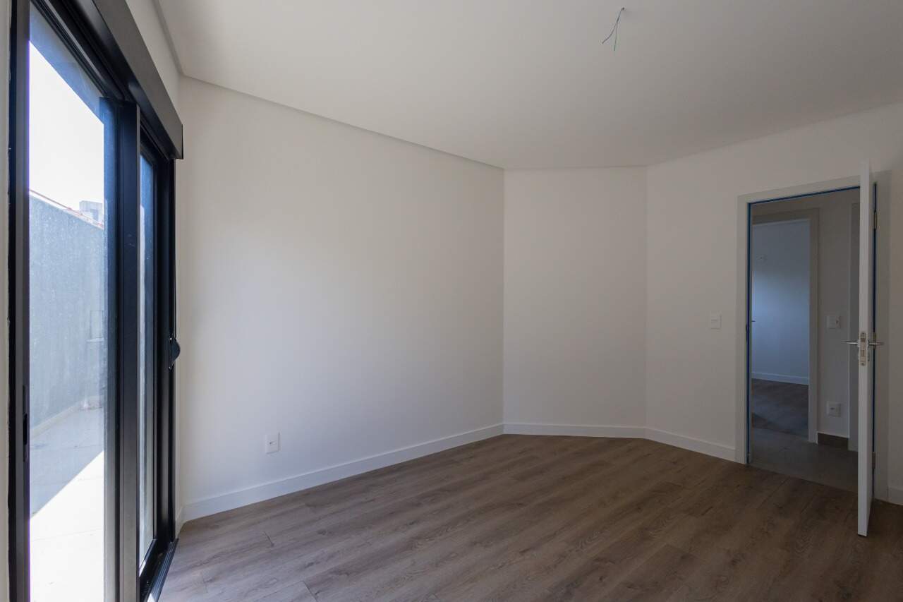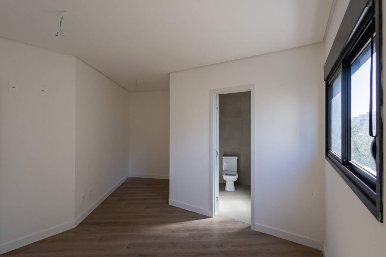 Apresenta piso em porcelanato nas áreas sociais e molhadas. Quartos e circulação contam com revestimento em laminado de madeira. As janelas dos quartos dispõem de persianas integradas.
