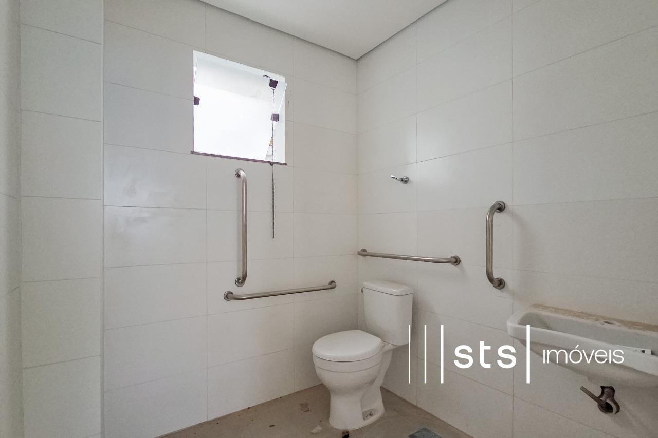 Os pavimentos são integrados por escada e elevador. No segundo pavimento, há um salão amplo, banheiro PCD e 03 varandas descobertas.
