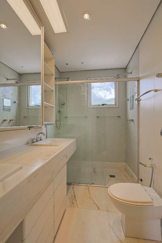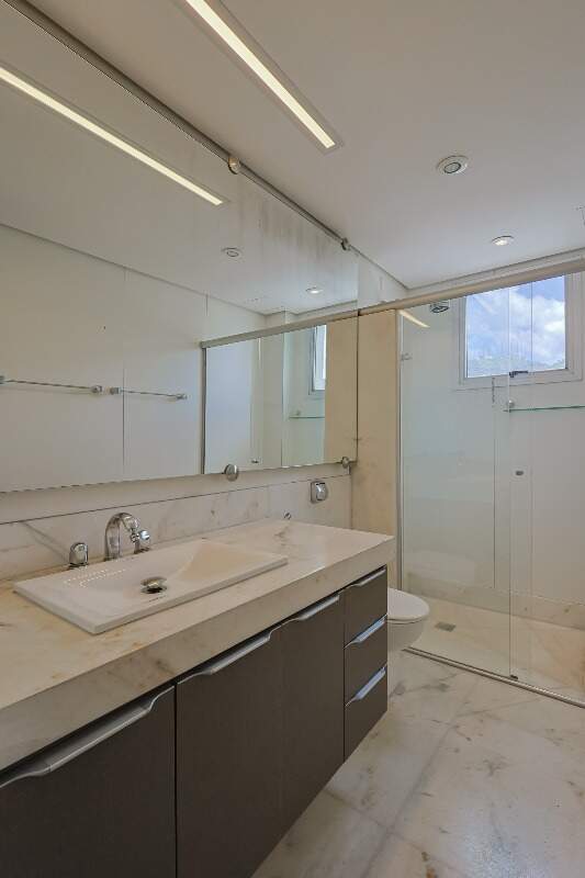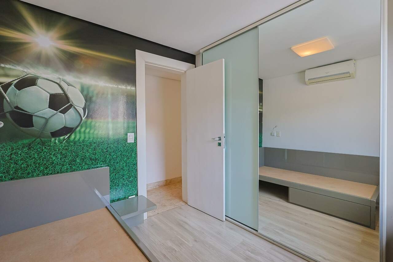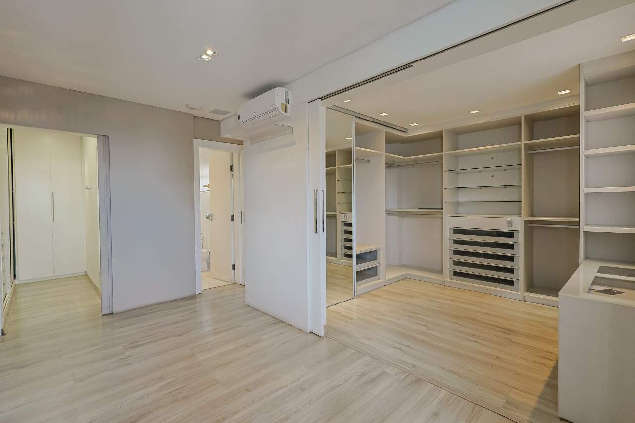 O imóvel conta com sala ampla para dois ambientes, lavabo, 3 quartos com armários planejados e ar-condicionado, suíte master com closet, cozinha planejada com bancadas em granito e área de serviço independente com DCE.
