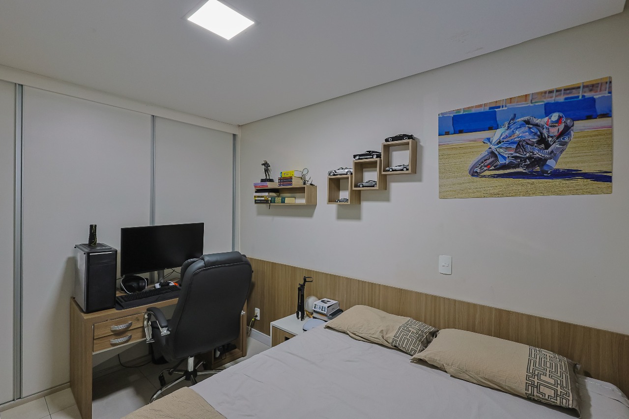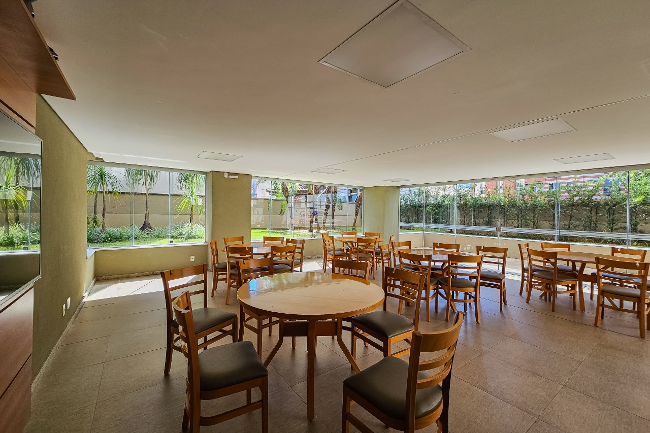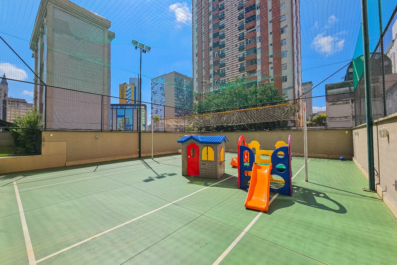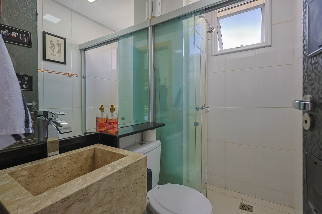 O edifício oferece infraestrutura completa, com portaria 24 horas, salão de festas, quadra poliesportiva, espaço gourmet equipado, além de sistema de segurança com câmeras e alarme.